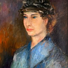 Pălăria neagră (Didi soția artistului), ulei pe carton, 57 × 47,5 cm, 1952